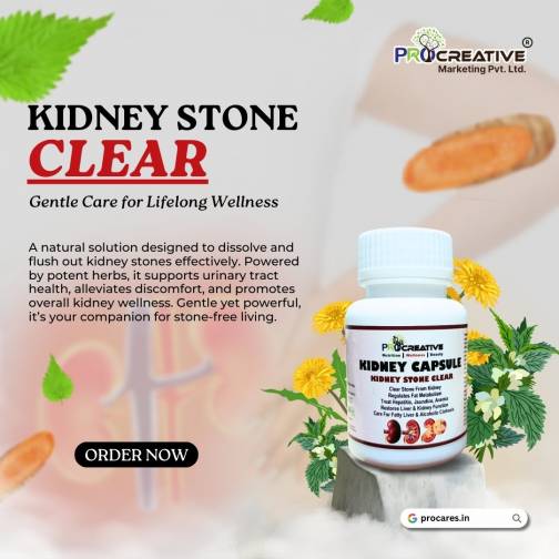 The Procreative Kidney Stone Clear Capsule is a dietary supplement formulated to support kidney health and help in the natural management of kidney stones. It is typically made from a blend of natural herbs and ingredients that have traditionally been used to support the breakdown and expulsion of kidney stones, as well as to maintain urinary tract health.
