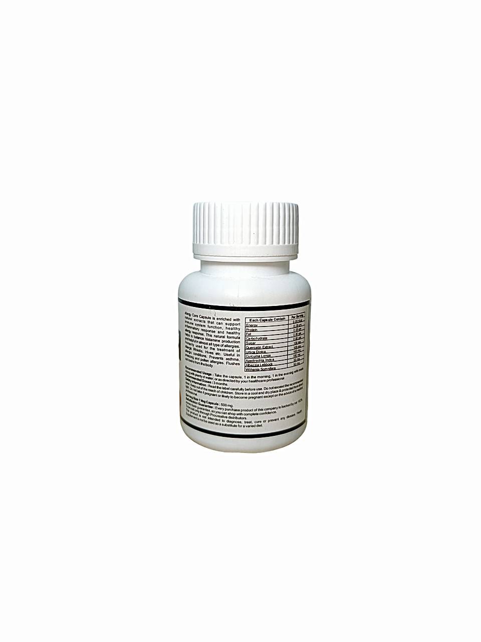 Allergy Care Capsules are specially formulated to provide relief from common allergy symptoms such as sneezing, runny nose, itchy eyes, and skin rashes. These capsules combine natural ingredients known for their anti-inflammatory and antihistamine properties to help reduce the body’s allergic response.