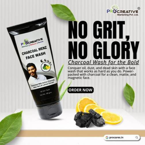 Procreative Charcoal Face Wash is designed to purify your skin by drawing out dirt, oil, and other impurities from deep within the pores. The activated charcoal acts as a magnet to absorb excess oil and environmental pollutants, leaving your skin feeling refreshed and rejuvenated. Suitable for all skin types, this face wash is gentle yet effective in clearing up blemishes and preventing breakouts, providing a fresh, matte finish.