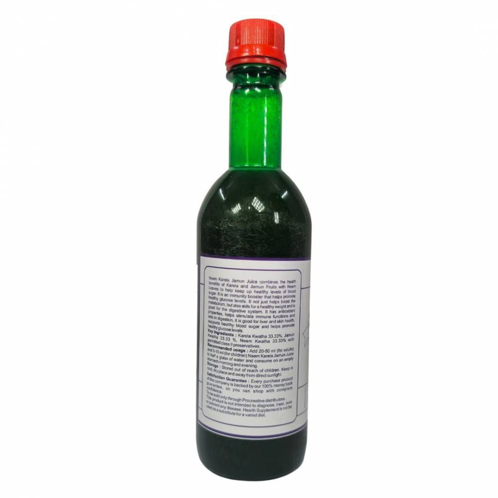 Recommended usage: Add 20-50 ml (for adults) and 5-10 ml (for children) Neem Karela Jamun Juice to half a glass of water and consume on an empty stomach morning and evening.