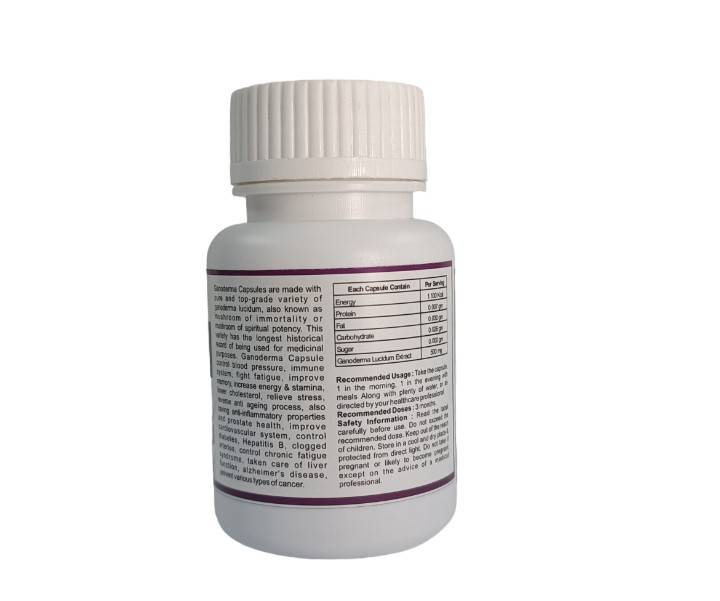 শুদ্ধ ও উচ্চমানের গ্যানোডার্মা লুসিডাম (অমর ছত্রাক বা আধ্যাত্মিক শক্তির ছত্রাক নামে পরিচিত) থেকে তৈরি। এই প্রজাতির ঔষধি ব্যবহারের দীর্ঘ ঐতিহাসিক রেকর্ড রয়েছে। গ্যানোডার্মা ক্যাপসুল রক্তচাপ নিয়ন্ত্রণ করে, ইমিউন সিস্টেম শক্তিশালী করে, ক্লান্তি দূর করে, স্মৃতিশক্তি বাড়ায়, শক্তি ও স্ট্যামিনা বৃদ্ধি করে, কোলেস্টেরল কমায়, মানসিক চাপ উপশম করে, বার্ধক্য রোধ করে, প্রদাহনাশক গুণাগুণ রয়েছে এবং প্রোস্টেট স্বাস্থ্য রক্ষা করে, হৃদযন্ত্রের কার্যকারিতা উন্নত করে, ডায়াবেটিস নিয়ন্ত্রণ করে, হেপাটাইটিস বি, ধমনী বন্ধ হওয়া, ক্রনিক ফ্যাটিগ সিনড্রোম নিয়ন্ত্রণ করে, লিভার ফাংশন রক্ষা করে, আলঝেইমার রোগ এবং বিভিন্ন ধরনের ক্যান্সার প্রতিরোধে সহায়তা করে।