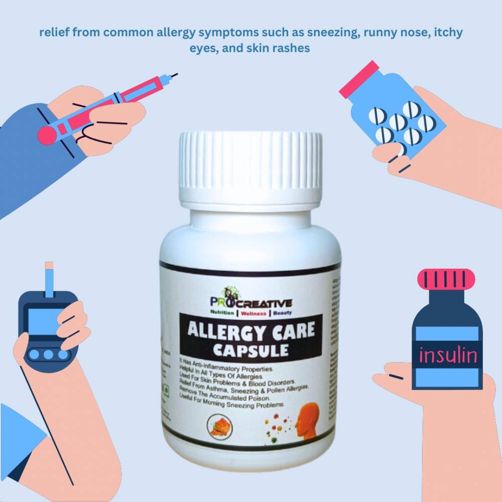 Allergy Care Capsules are specially formulated to provide relief from common allergy symptoms such as sneezing, runny nose, itchy eyes, and skin rashes. These capsules combine natural ingredients known for their anti-inflammatory and antihistamine properties to help reduce the body’s allergic response.