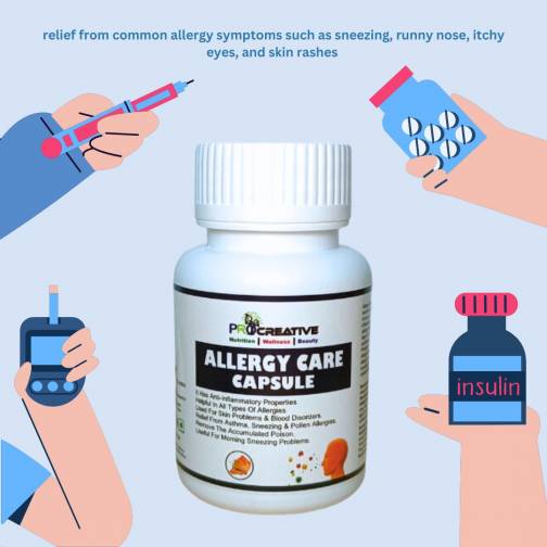 অ্যালার্জি কেয়ার ক্যাপসুলগুলি বিশেষভাবে তৈরি করা হয়েছে হাঁচি, নাক দিয়ে পানি পড়া, চোখ চুলকানো এবং ত্বকে ফুসকুড়ির মতো সাধারণ অ্যালার্জির লক্ষণগুলি থেকে মুক্তি দেওয়ার জন্য। এই ক্যাপসুলগুলিতে প্রাকৃতিক উপাদানগুলি একত্রিত করা হয় যা তাদের প্রদাহ-বিরোধী এবং অ্যান্টিহিস্টামিন বৈশিষ্ট্যের জন্য পরিচিত যা শরীরের অ্যালার্জির প্রতিক্রিয়া কমাতে সাহায্য করে।